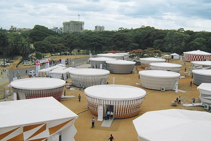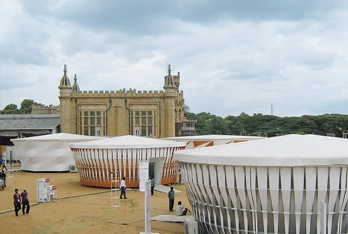 Kulturbrücke zwischen Nationen: 14 Multifunktions-Pavillons vereinen deutsche und indische Gestaltungselemente.