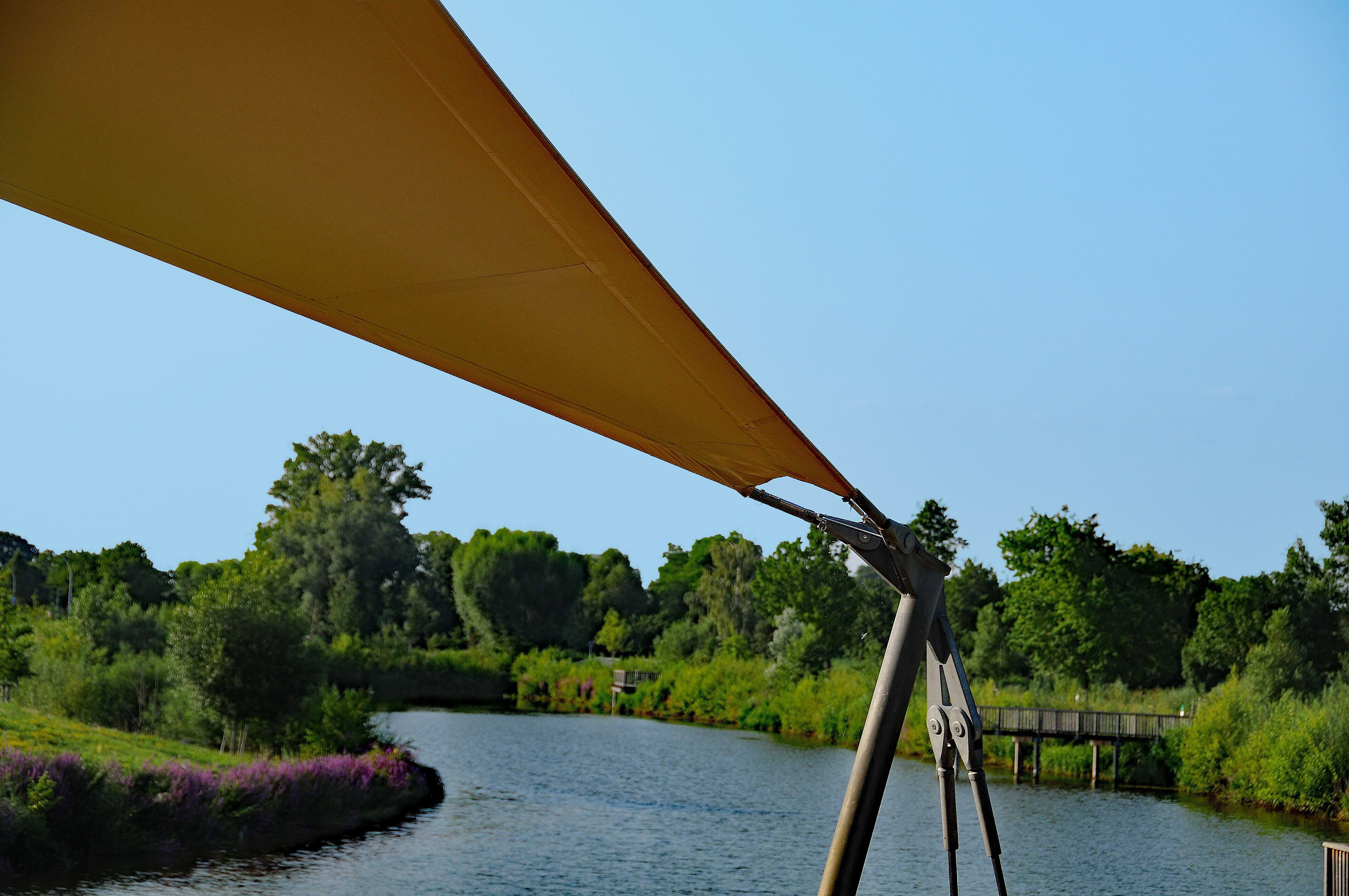Durch die Farbwahl gehen wir davon aus, dass die Reinigung des Segels nicht oder nur in sehr großen Intervallen durchgeführt wird, ohne dass die Konstruktion ungepflegt aussieht.