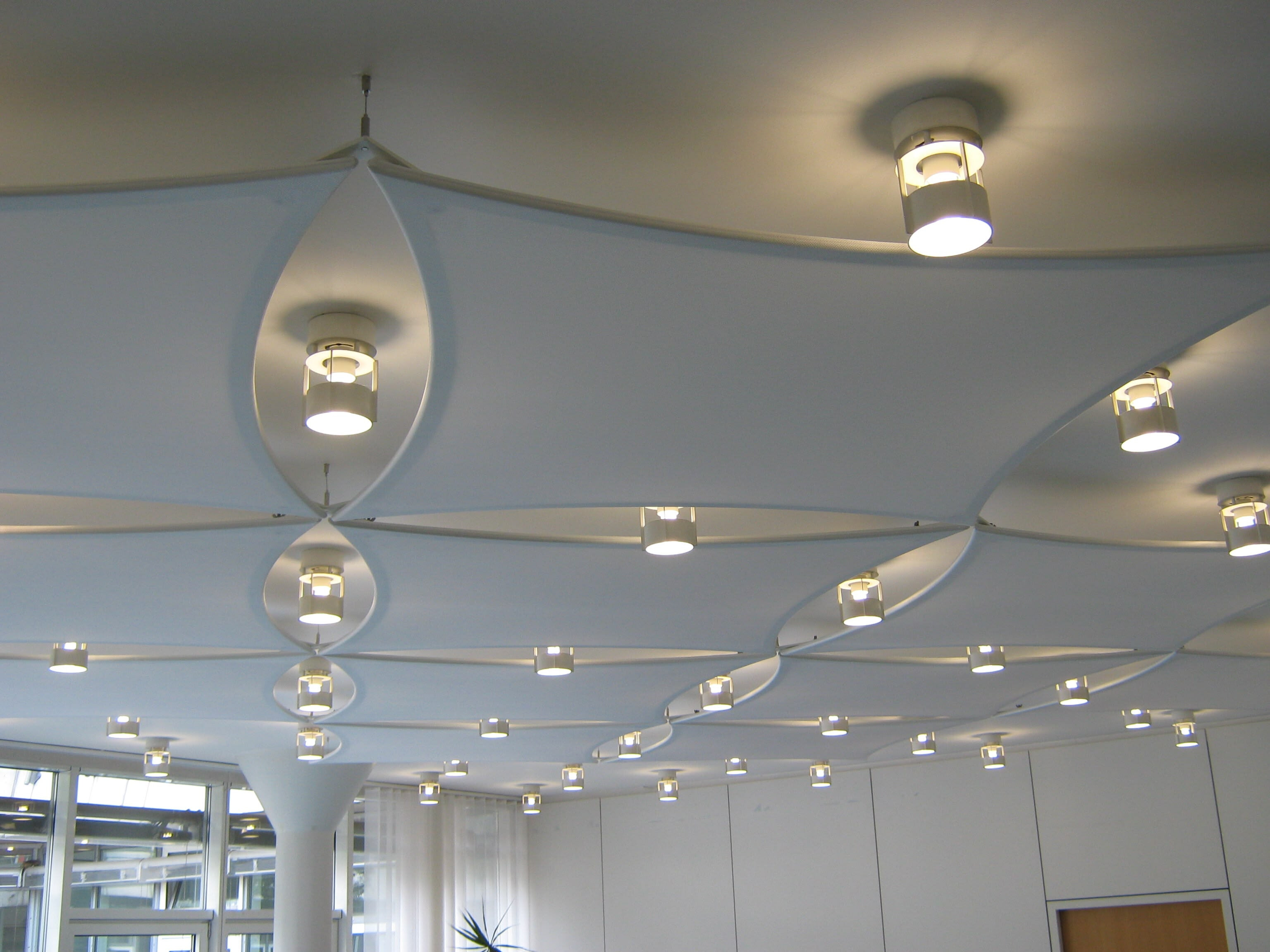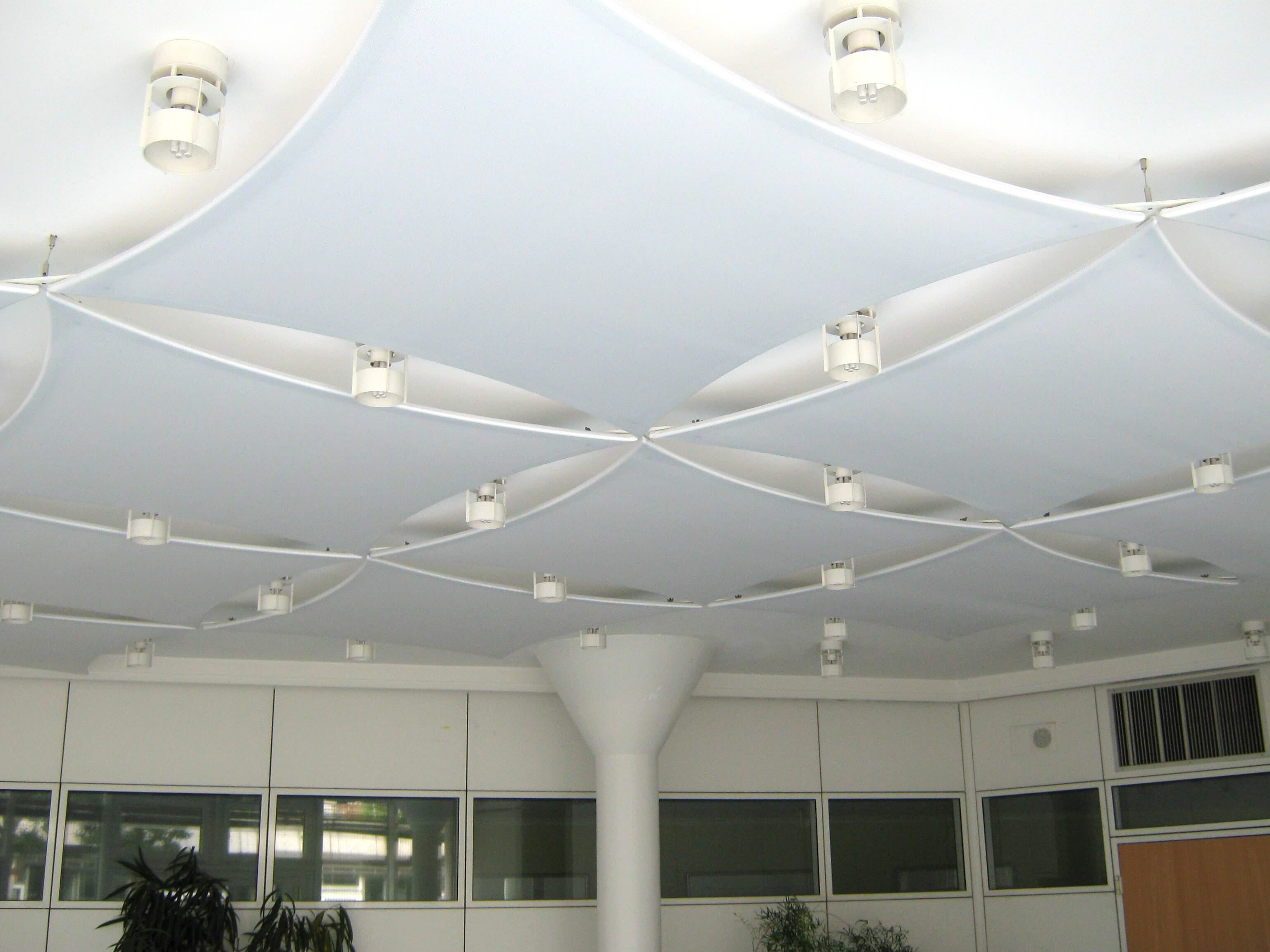 Die Emmi-Schuster-Stiftung in Rosenheim hat verschiedene Bereiche ihres Wohnheimes für betreutes Wohnen mit Deckensegeln aus unserem Hause ausgestattet. Das schallabsorbierende Gewebe schafft durch seine lärmreduzierende Wirkung eine angenehm ruhige Atmosphäre und reduziert somit den Stressfaktor auf die Heimbewohner erheblich. Die sehr hohe Streuwirkung des Artex® Licht- und Akustikgewebes ermöglicht eine gleichmäßige Ausleuchtung der Räume. Amtliche Gutachten zum Brandverhalten des Materials liegen selbstverständlich vor.
