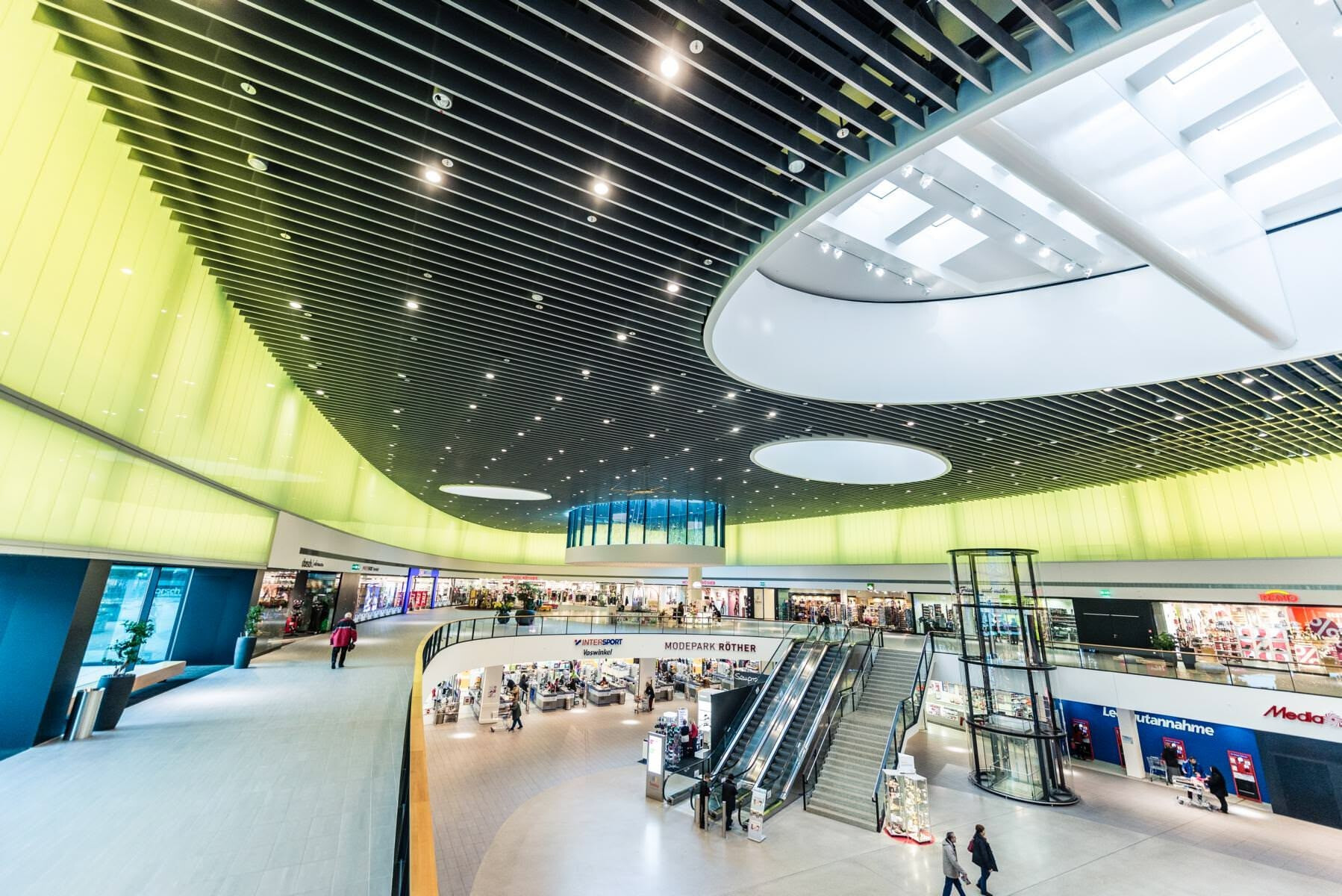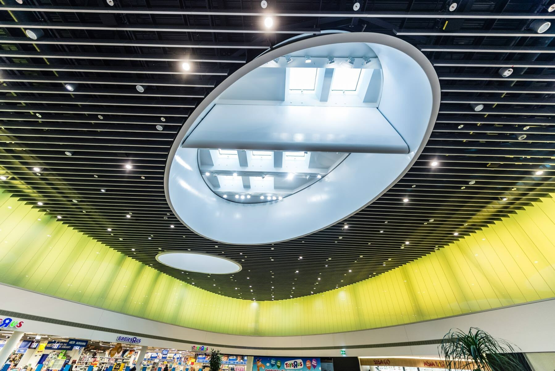 Gewaltige Lichtkuppelverkleidungen, die wie riesige Lampenschirme wirken, wurden im Einkaufszentrum HUMA in Schwabach installiert. Die zweilagige Bespannung verhindert die Verschmutzung durch Insekten und Staub. Derartige Lampenschirme können problemlos mit unseren Artex oder Helioflon Licht- und Akustikmembranen bespannt werden.
