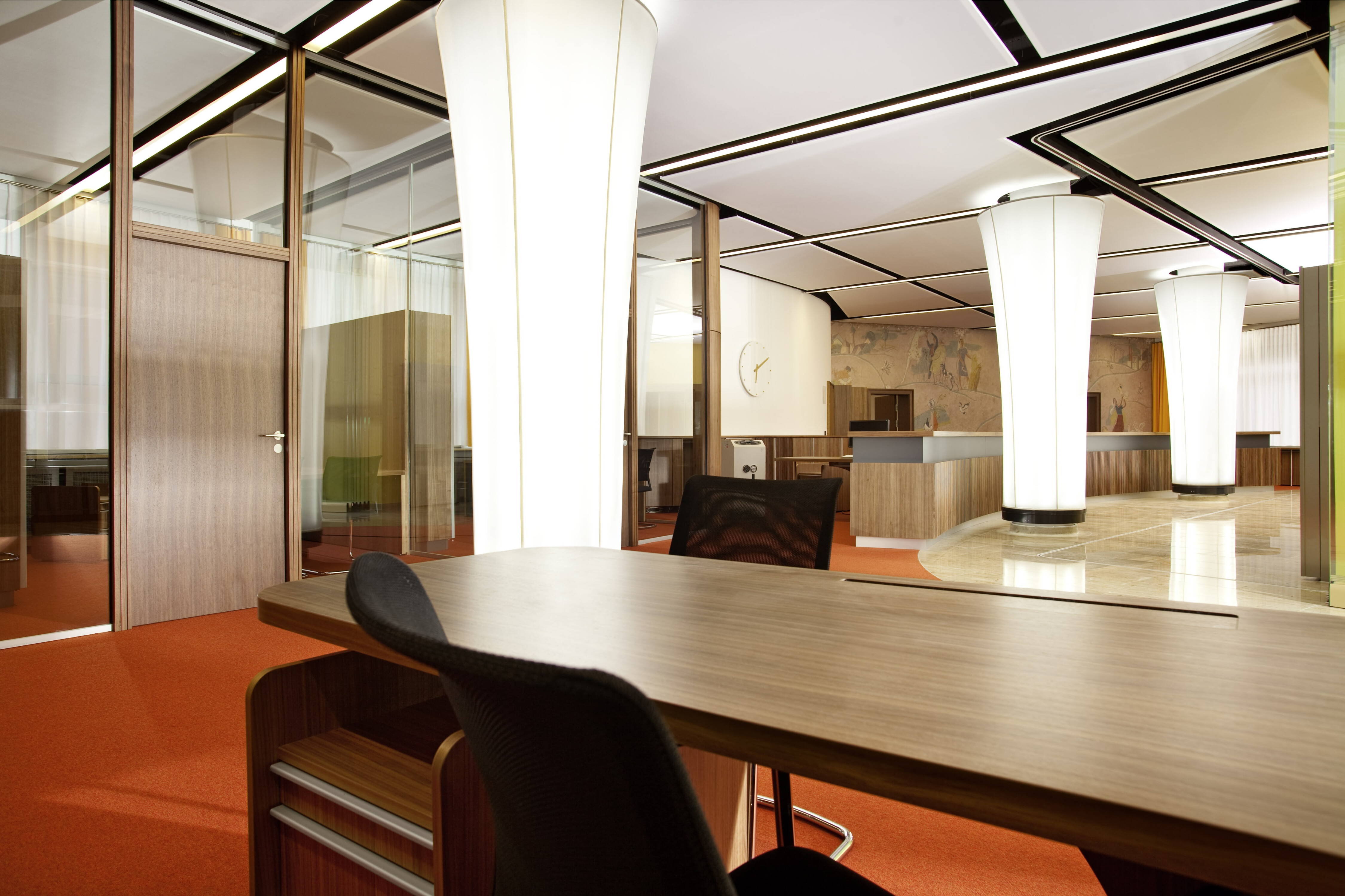 Der verbesserte Schallschutz bietet dem Kunden, aber auch dem Mitarbeiter ein erhöhtes Maß an Diskretion. Die übersichtliche und perfekt abgestimmte Raumstruktur schafft ein Ambiente, das sich auf Kunden wie auch auf Mitarbeiter sehr positiv ausstrahlt.