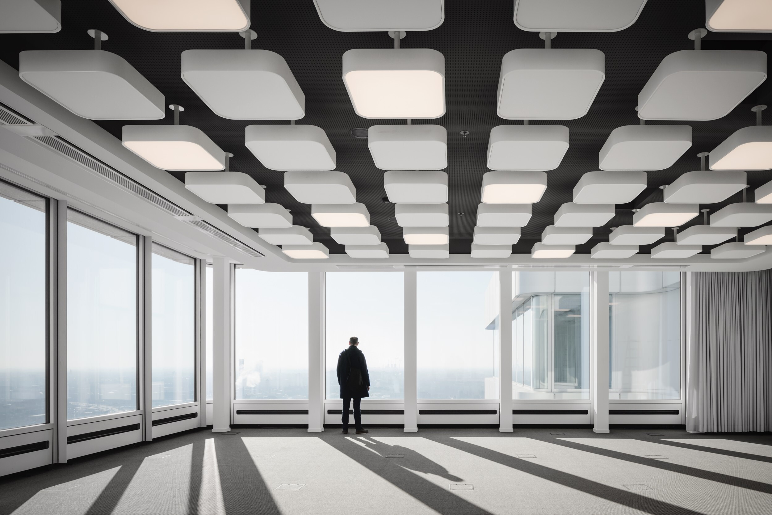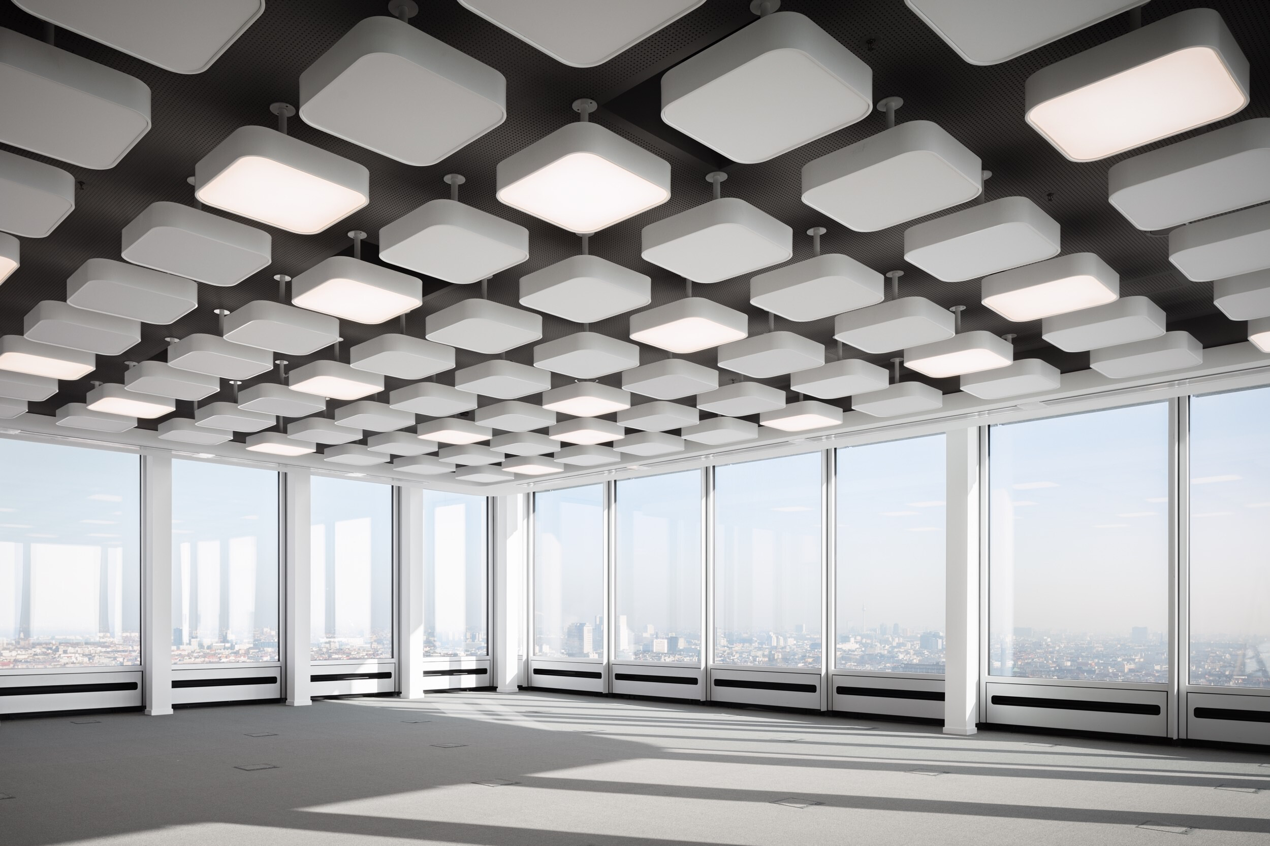 Hochhaus-Modernisierung: 310 maßgeschneiderte Lichtdeckenelemente transformieren 23 Stockwerke in zeitgemäße Arbeitsumgebung.