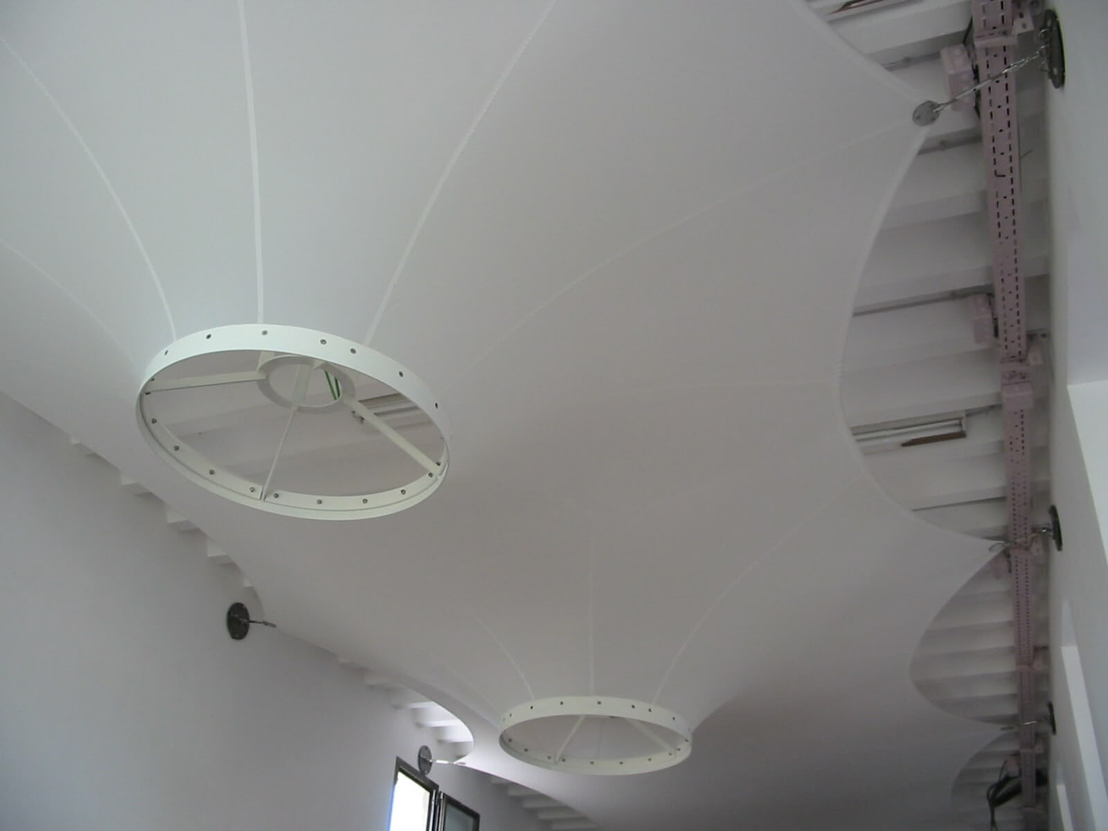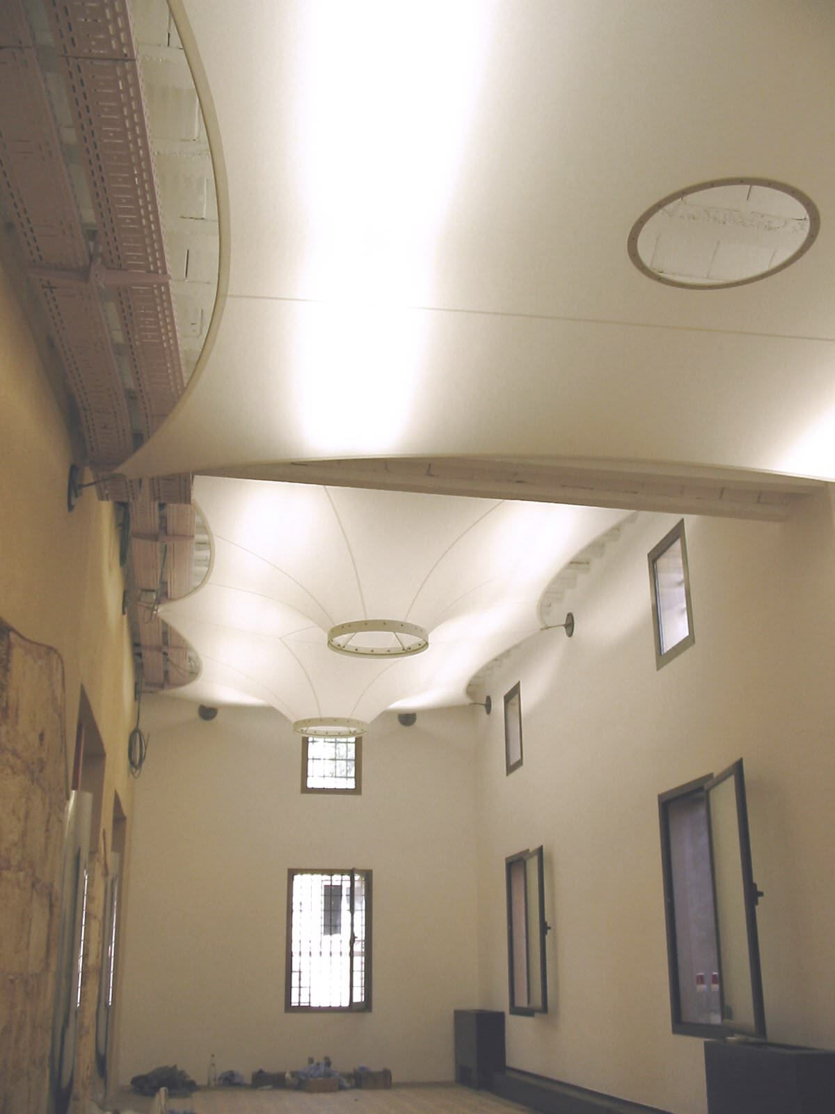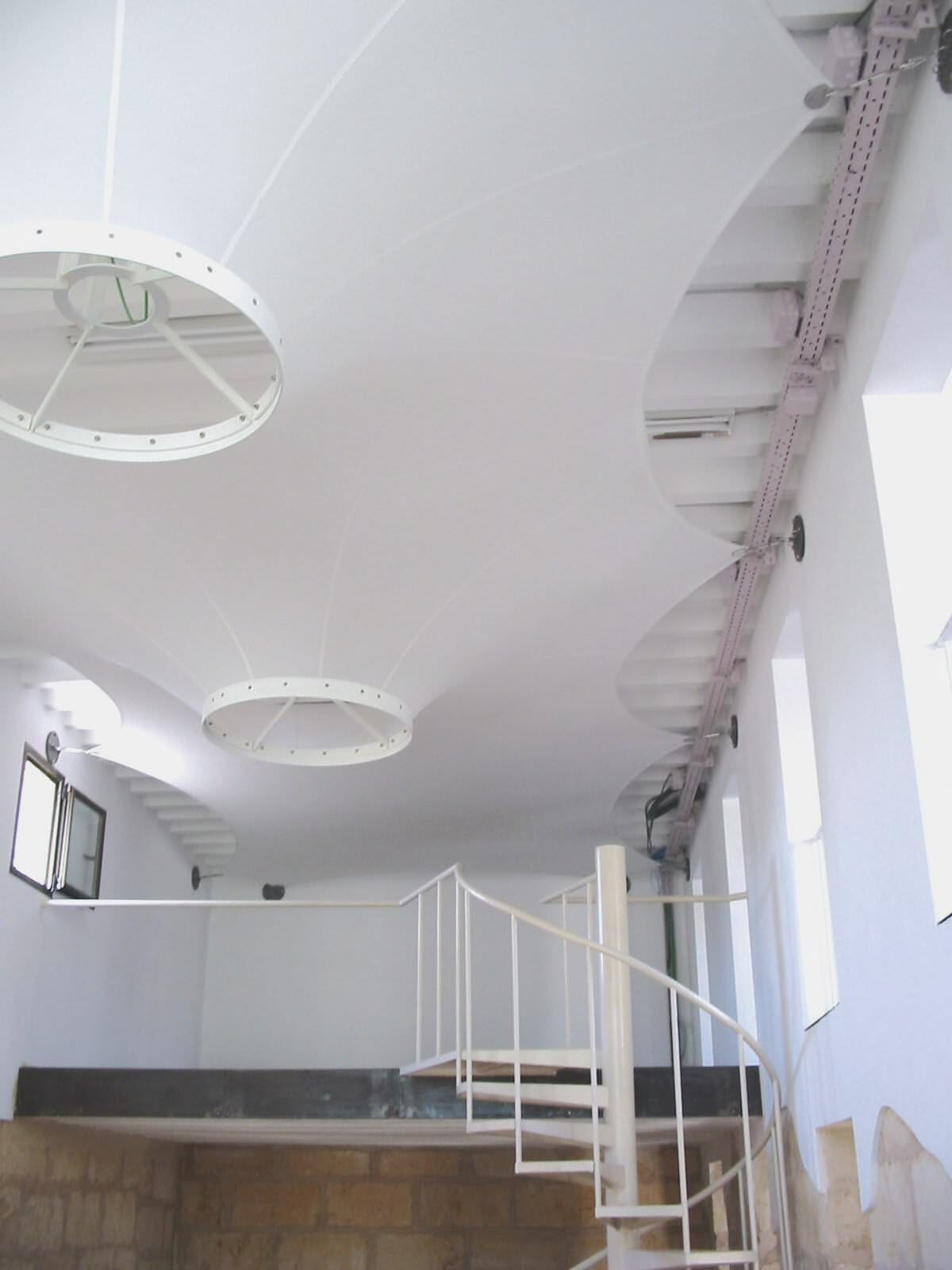 Als optische Aufwertung in einem von Grund auf renovierten und neu gestalteten Bürogebäude auf Mallorca wurden diese von der Form her unterschiedlichen Lichtdecken installiert. Die Deckenbespannung wurde je nach Einbausituation ebenflächig oder auch dreidimensional in Trichterform realisiert. Die Lichtdurchlässigkeit der Membrane und der sehr hohe Streulichtanteil verbessern die Raumausleuchtung und schaffen eine angenehme Atmosphäre. Diese Konstruktion ist in die Brandklasse B1 (schwer entflammbar) nach DIN 4102 einzustufen.