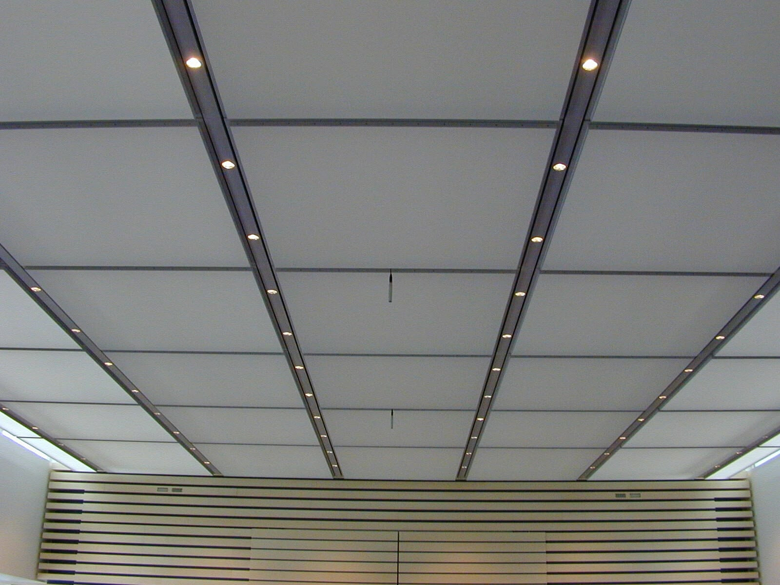 In diesem multimedial ausgestatteten Konferenzraum von Siemens in München, schafft die Lichtdecke, die aus einzeln abklappbaren zweilagigen Deckenelementen besteht, ein ganz weiches Streulicht. Kombiniert mit diesen großflächig leuchtenden Lichtelementen wurden im Bereich der Auflager sogenannte Downlights als weiteres Lichtsystem installiert. Insgesamt eine Lösung die überzeugt.