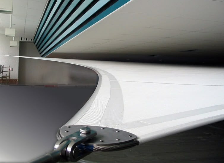 Die frei gespannten Segel sind schnell montiert, können sehr variabel gefertigt werden und stellen somit eine wirtschaftliche Variante dar, wenn die Raumakustik in großen Räumen verbessert werden soll.