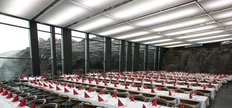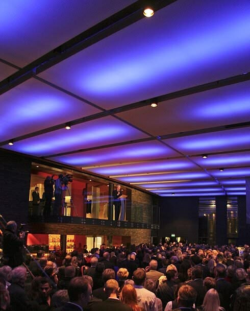 Die Blaue Lagune, das weltbekannte Thermalfreibad nahe Reykjavik auf Island, bietet Saunen, Massagen und Dampfbäder sowie eine Reihe von Schönheitsprodukten an, die aus den im Wasser enthaltenen Salzen und Algen hergestellt werden. Um die stetig steigenden Besucherzahlen auch in Zukunft noch bewältigen zu können, wurde das Bad erweitert. Die sehr moderne Architektur umfasst auch ein Restaurant, dessen Deckenbereich von uns mit Licht- und Akustikelementen ausgestattet wurde. Mit Artex® Licht- und Akustikgewebe bespannt, wurde die Lärmentwicklung hörbar gedämpft. Die bis zu 3 x 6 m großen Licht- und Akustikelemente sind hinterleuchtet und können einseitig aufgeklappt werden, um bei Bedarf die Lichtinstallation zu warten. Durch eine zweite obere Membrananlage konnte die Lichtstreuung optimiert und eine sichtbare Verschmutzung verhindert werden.