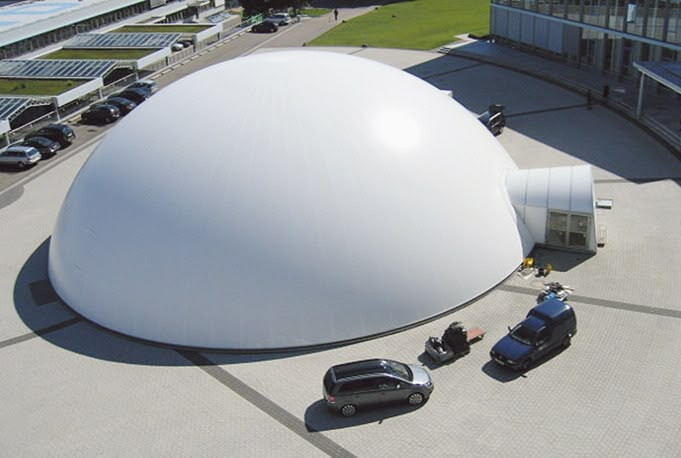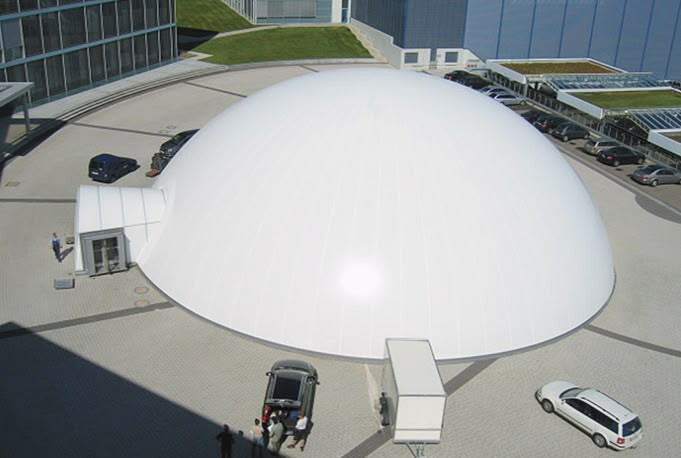 Für die Festo AG in Esslingen wurde im Auftrag der Kunsthalle Bonn ein pneumatisch gestütztes Gebäude entwickelt, das durchaus auch als mobile Immobilie bezeichnet werden kann. Dem sogenannten "Airquarium", das von Prof. Thallemer designed wurde, dient als Fundament umlaufend ein mit Wasser oder auch Sand gefüllter Schlauch, der fest mit dem unteren Rand der kugelförmigen Membrane verbunden ist. Das Gebäude wird durch eine Luftschleuse betreten und verlassen. Entlüftungsventilatoren, am oberen Rand der Kuppel in die Membrane integriert, sorgen für die notwendige frische Luft im Inneren.