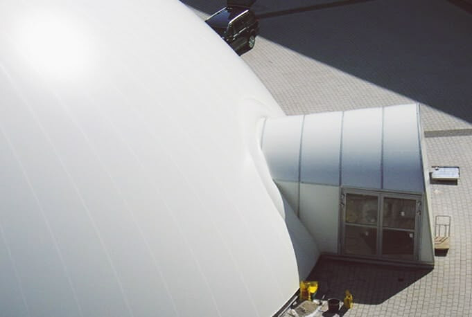 Der 17,50 m hohe Energieturm im Hildesheimer Stadtteil Drispenstedt wird von einer 370 m² großen Membranbespannung umfüllt. Koch Membranen entwickelte und konzipierte die Fassade des turmartigen Baukörpers.