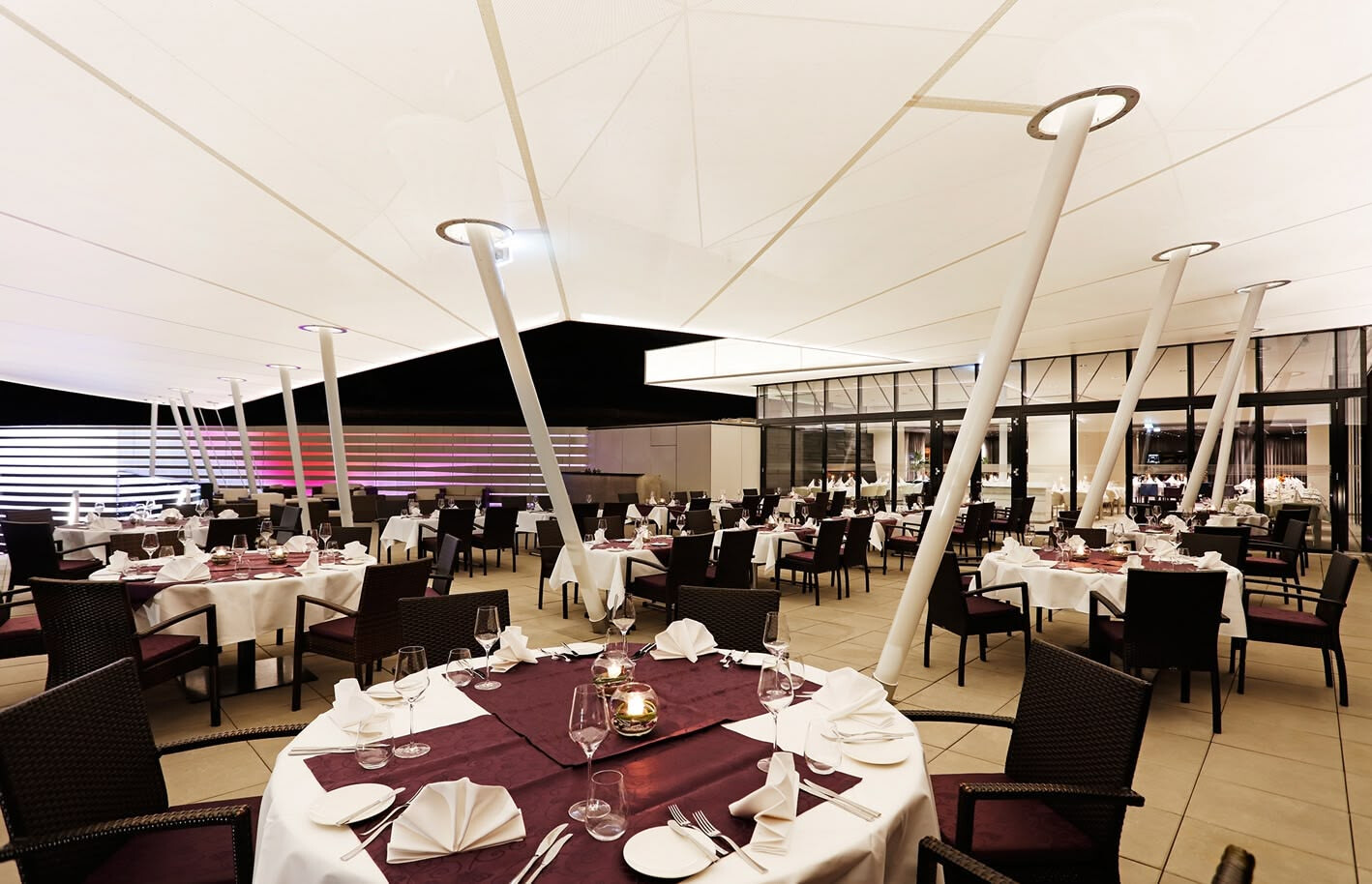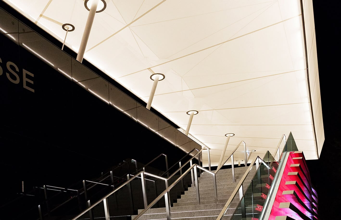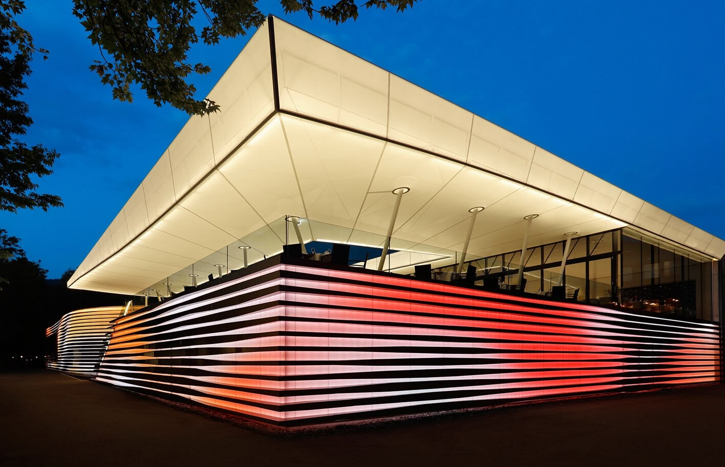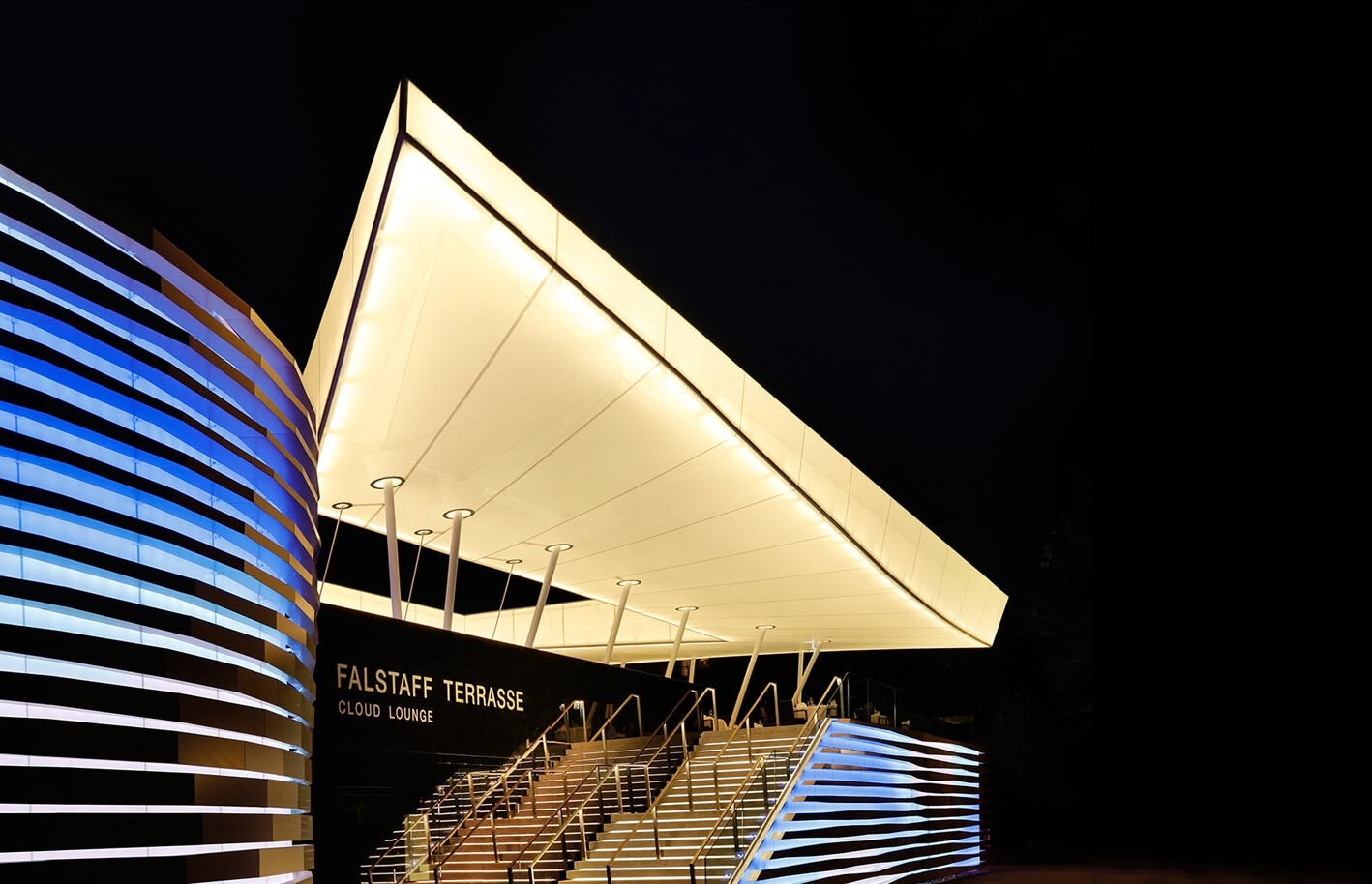 Für diese äußerst filigrane und minimalistische Ausführung war Koch Membranen von Anfang an der Wunschpartner. Die im Detail sehr komplexe Planung, qualitativ hochwertige und äußerst maßgenaue Fertigung führten trotz der unter sehr hohem Termindruck stehenden Montage zu einem optimalen Ergebnis, das den Bauherrn, Casino Austria, auf ganzer Linie überzeugt. Seit der Neueröffnung sind die Erwartungen an die Besucherzahlen bei weitem übertroffen worden. Der Besuch der Bregenzer Festspiele oder das feine Dinner nach dem Casinobesuch im Restaurant FALSTAFF wird so zu einem unvergesslichen Erlebnis.