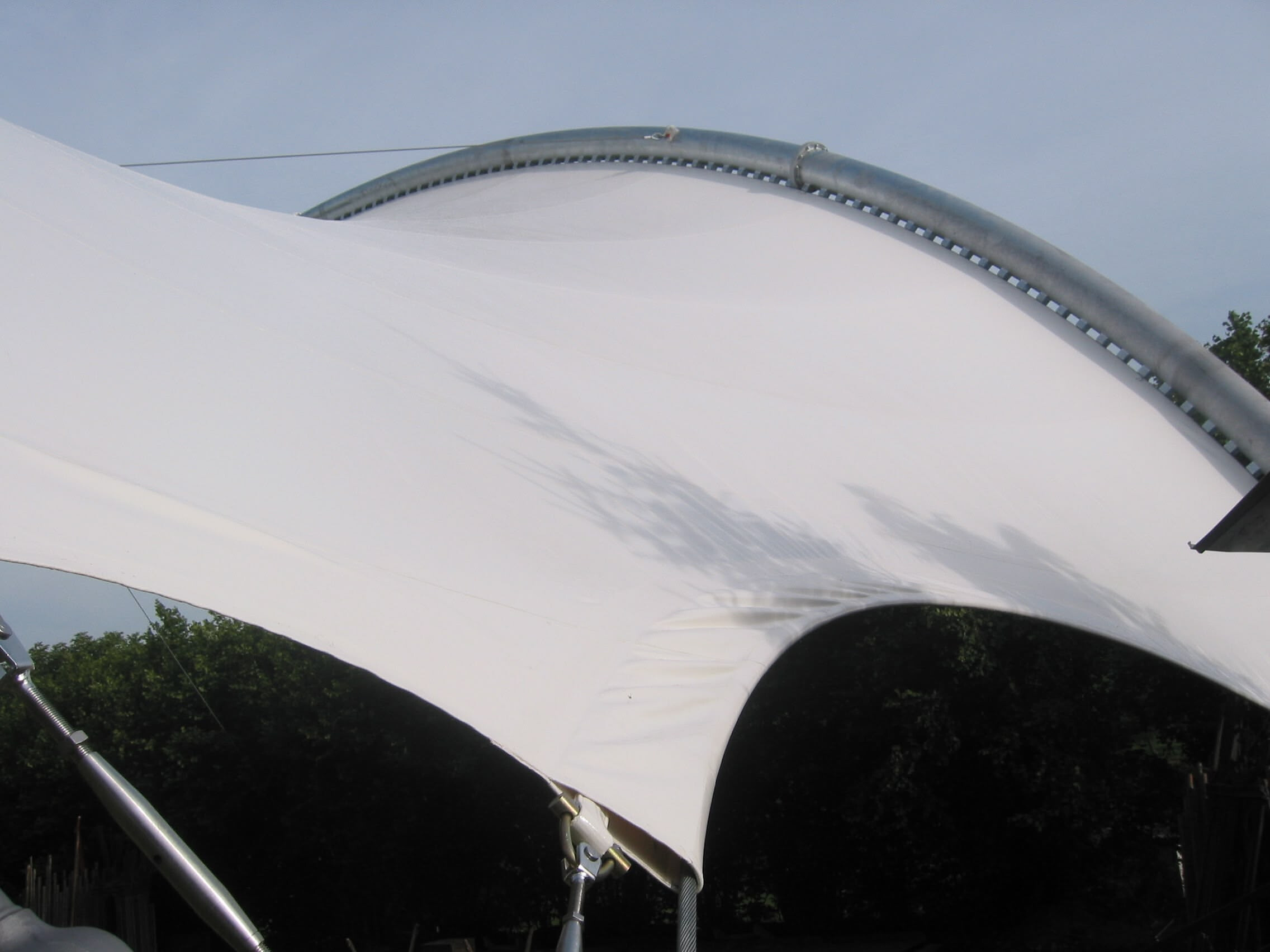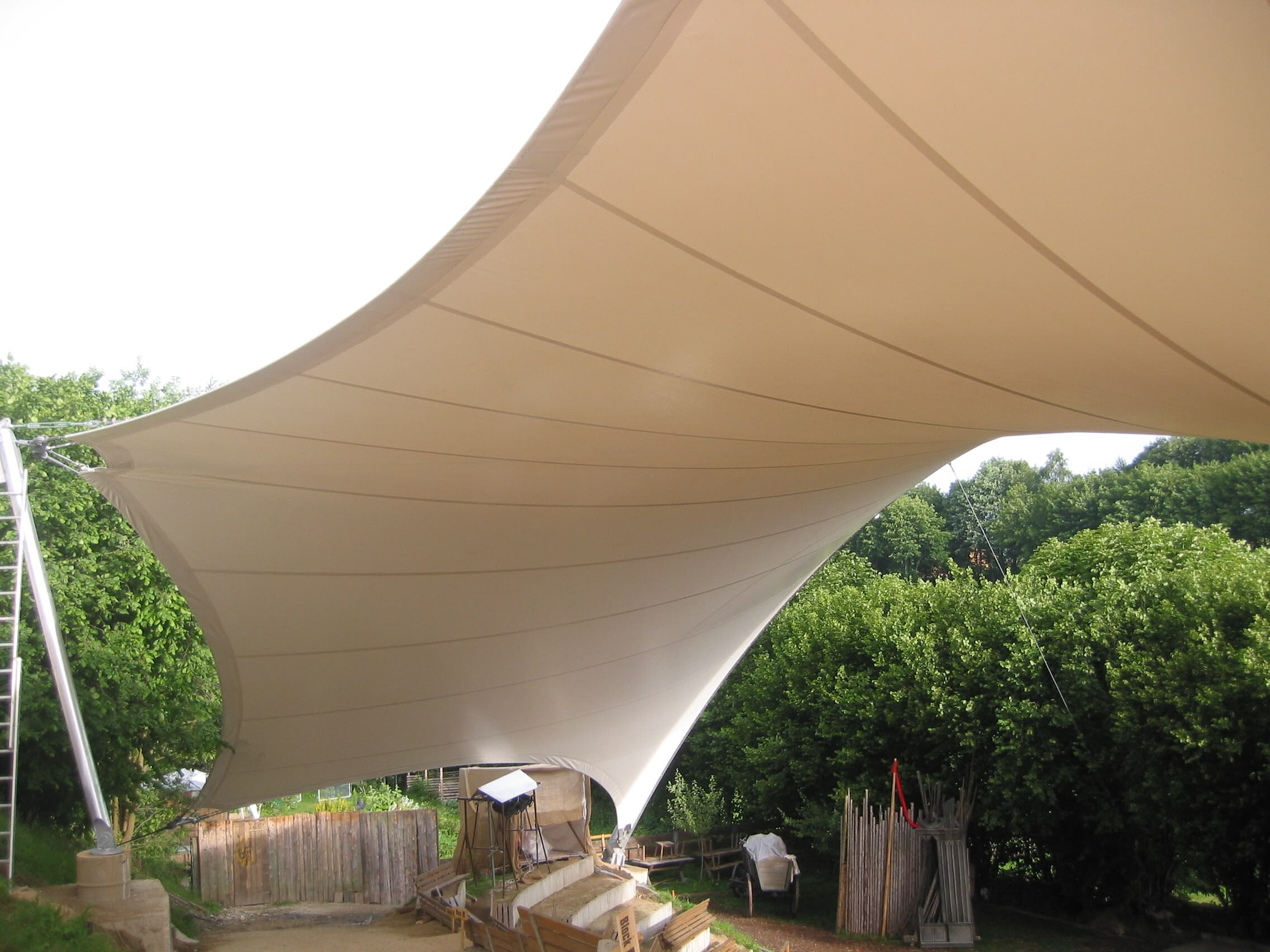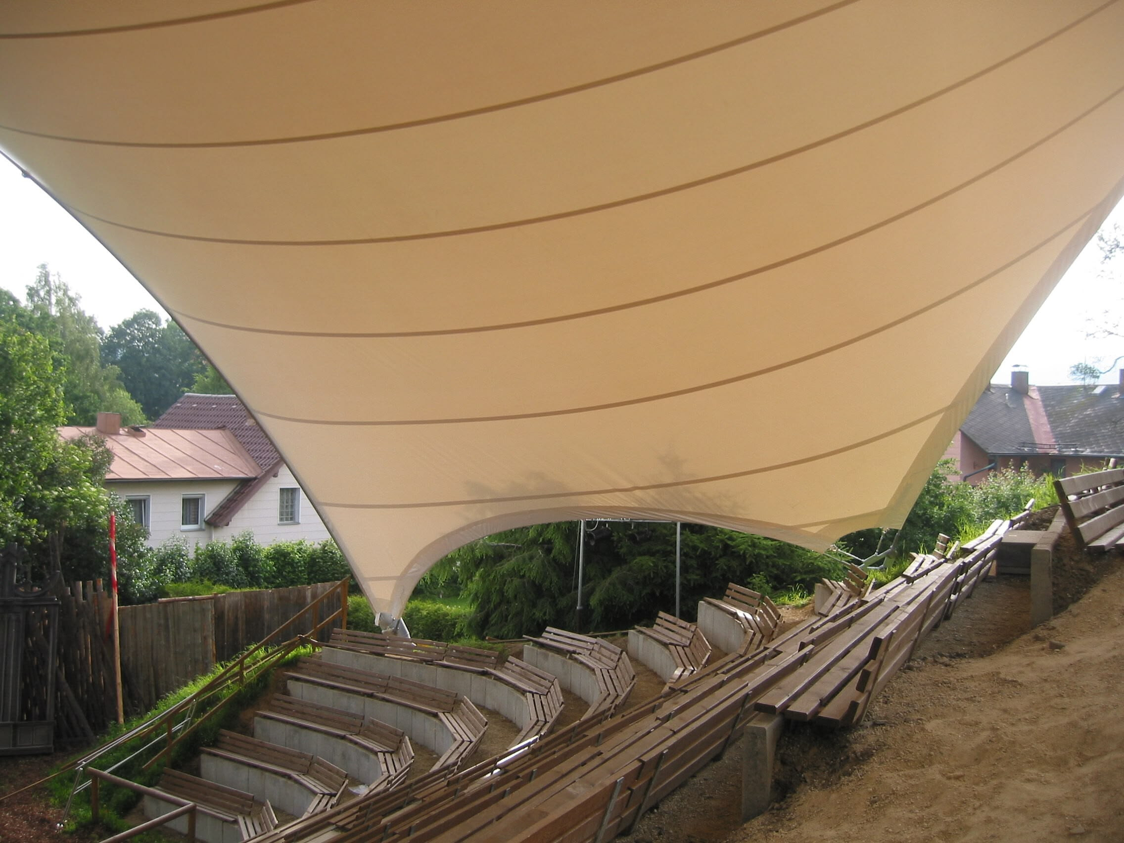 Der Innenhof des Renaissanceschlosses Weitra in Niederösterreich dient als Veranstaltungsort mit einem besonderen Ambiente. Um eine wetterunabhängige Nutzung zu sichern wurden im Schlosshof (ca. 22 x 32 m) vier wandelbare Trichterschirme installiert. Die Membranen selbst sind extrem knick- und alterungsbeständig.