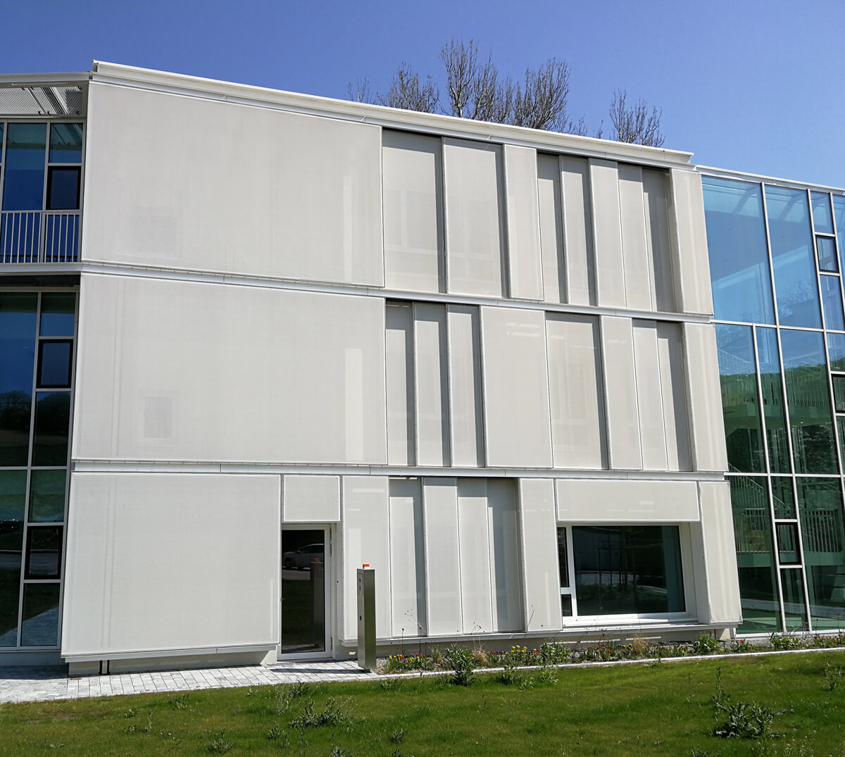 Koch Membranen fertigte für die Fassade insgesamt 272 rechteckige, teils automatisch verfahrbare Membranelemente in 56 unterschiedlichen Größen. Die verfahrbaren Fassadenelemente können mittels elektronischer Steuerung je nach Bedarf geschlossen werden. So ist ein optimaler und individueller Schutz vor Sonnenlicht gegeben.
