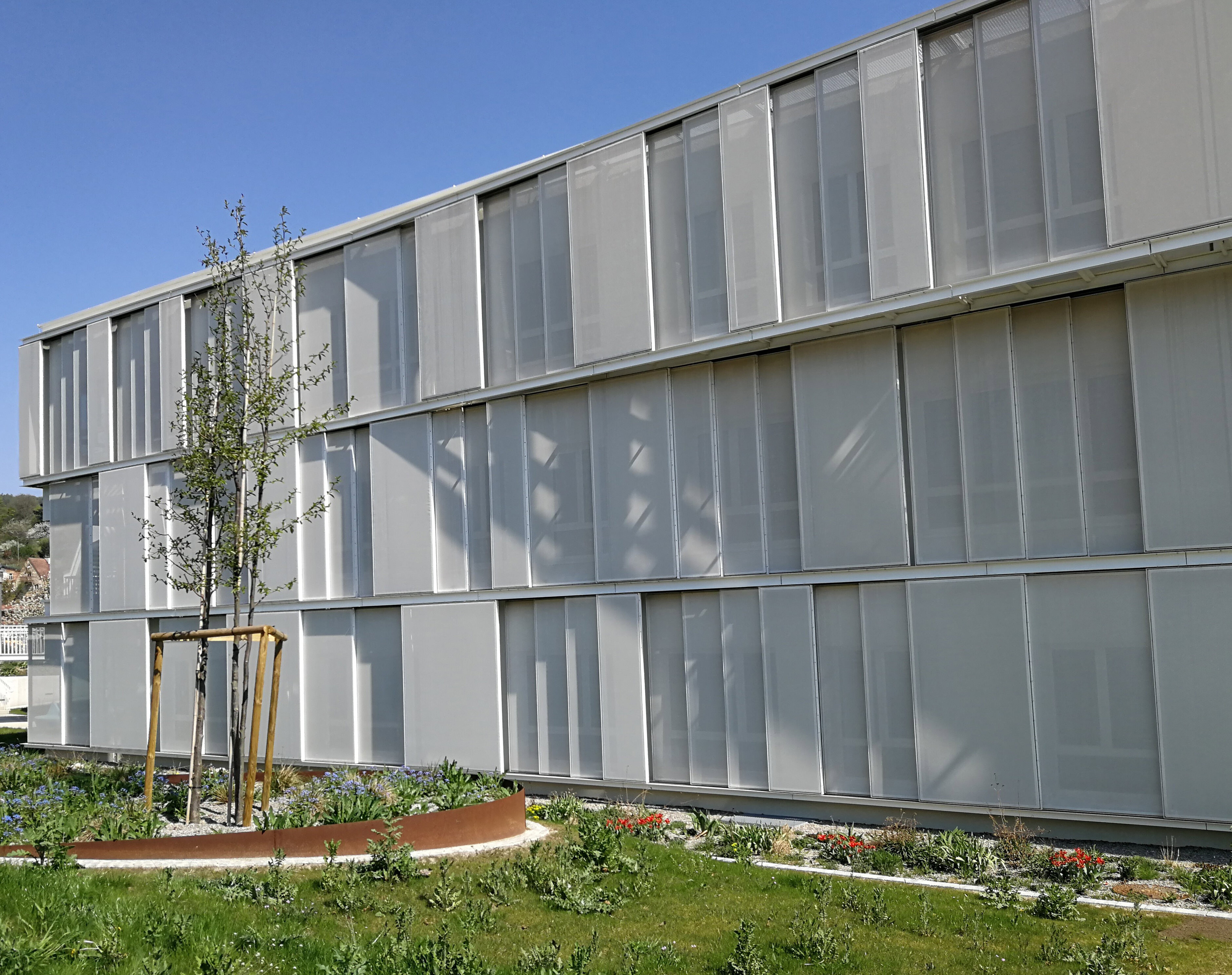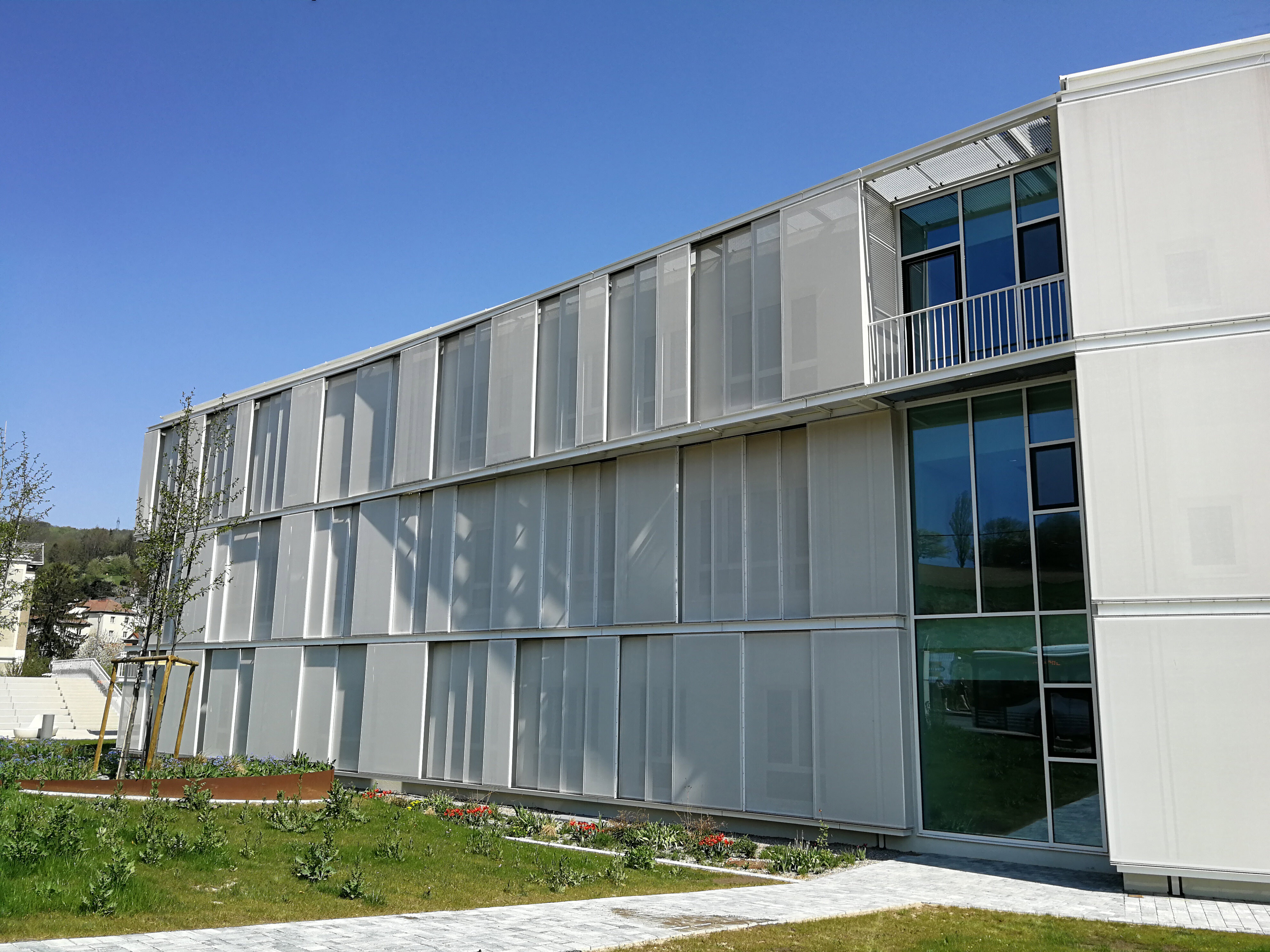 Das neue Verwaltungsgebäude des "Institute of Science and Technology" in Klosterneuburg (Österreich) empfängt künftig die Besucher des Campus und besteht aus einem Stahlbetonmassivbau, welcher von einer vorgehängten, textilen Fassade umhüllt wird.