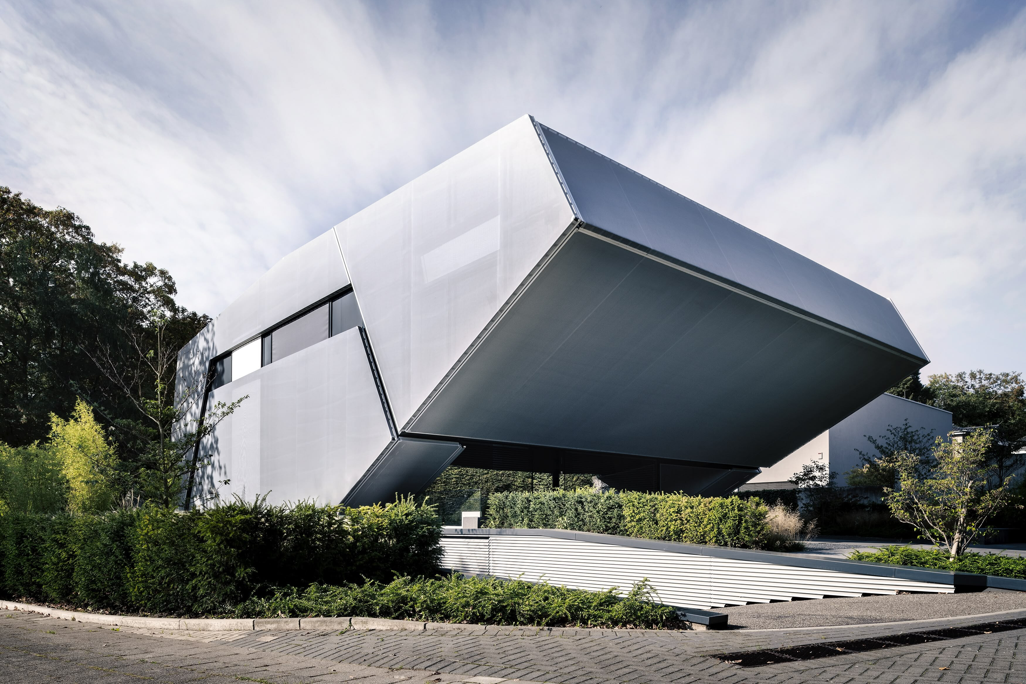 Im Rahmen des spektakulären Neubaus eines privaten Wohnhauses, durften wir die Fassaden mit einer hochwertigen textilen Fassade ausstatten.