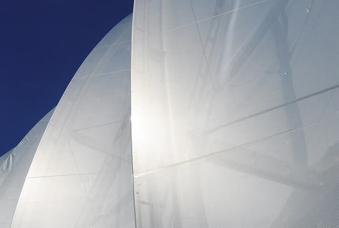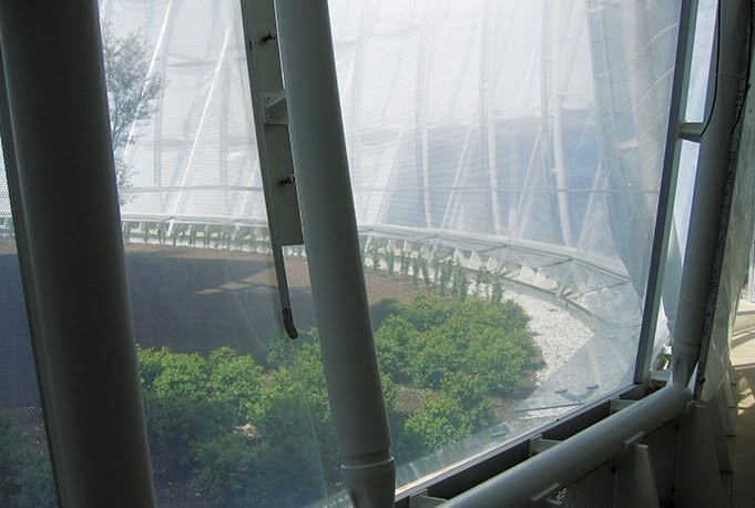 Klimaschutz durch Transparenz: Einlagiges ETFE reflektiert Sonnenlicht und bewahrt dennoch freien Ausblick.