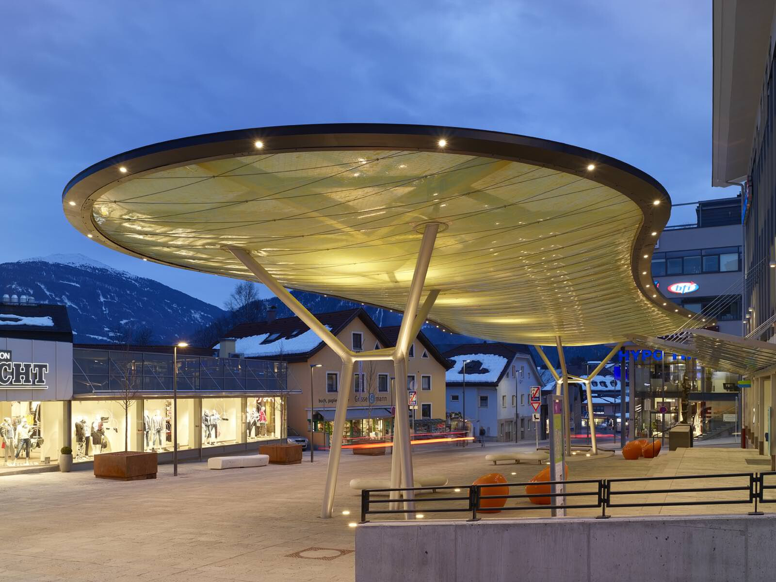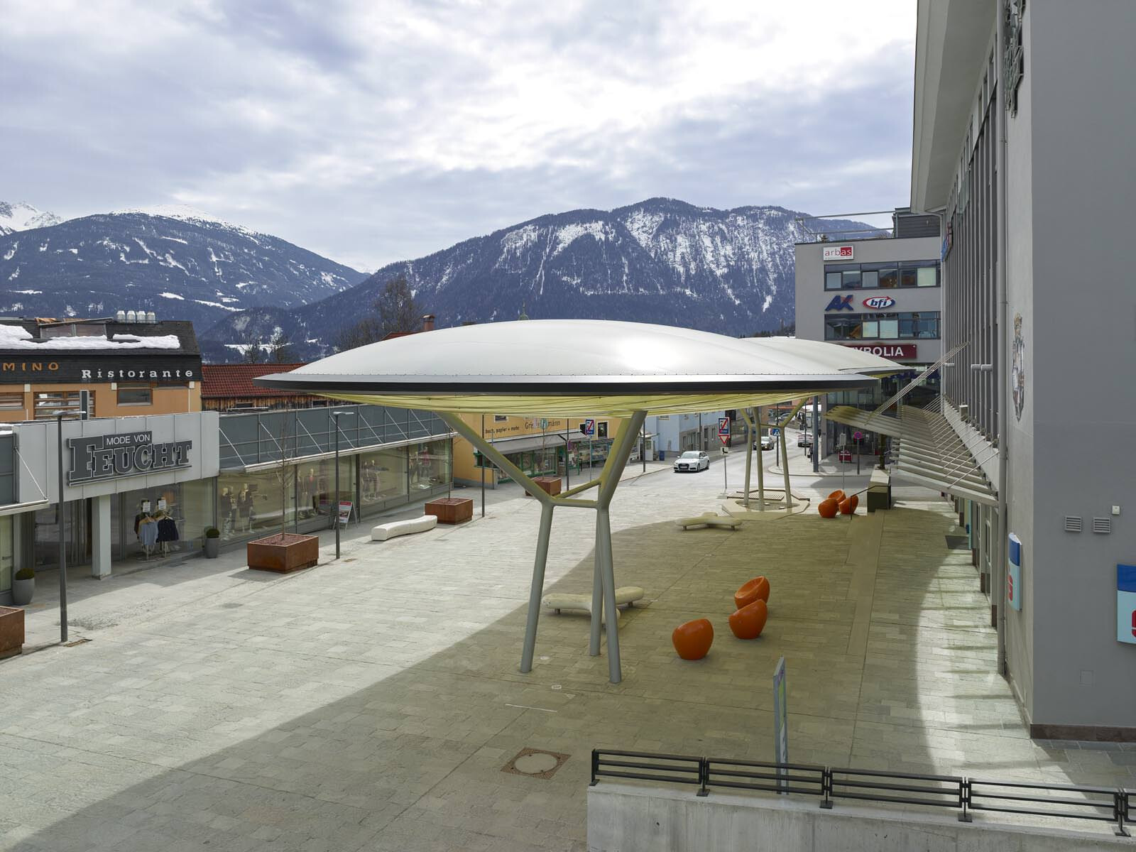 Im September 2017 wurde der neu gestaltete Vorplatz der Sparkasse im Zentrum von Imst feierlich eröffnet. Das Herzstück des Stadtplatzes stellt dabei die freistehende Überdachung dar.
